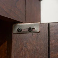 Avalene Modern Farmhouse 2 Door Glass Windowpane Accent Cabinet Rustic Oak – Saracina Home