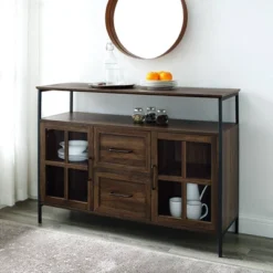 Avalene Modern Farmhouse 2 Door Glass Windowpane Accent Cabinet Rustic Oak – Saracina Home