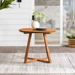 Saracina Home 36″ Modern Acacia Slatted Round Outdoor Dining Table