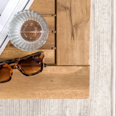 Ravenscroft Modern Boho Acacia Wood Slatted Outdoor Coffee Table With Lower Shelf – Saracina Home