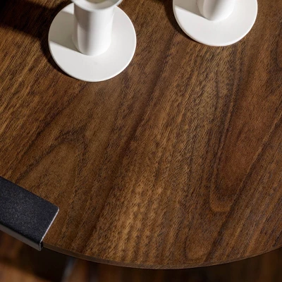 Place the Wrightson Urban Industrial Wrap-Leg Round Side Table Set by Saracina Home next to your sofa for a rustic, industrial touch to the living room. The metal legs of these two accent tables appear to wrap up and around the edges of the tabletop for easy-to-assemble urban flair. Appreciate the durable laminate’s wood-grain finish complemented by the smooth, metal legs as you turn on a lamp or water the plants that adorn the round tabletops.